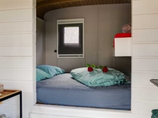 Stap in onze knusse Pipowagen, waar buiten de charme van het platteland wacht en binnen de romantiek tot leven komt. Slaap in de absolute stilte in de gezellige bedstee (160×200), geniet van het minikeukentje, het zitje en de eettafel, en voor de kleintjes is er een bed van 160×80. Met een privétoilet en douche heeft u alles wat u nodig heeft in dit mini-huisje op wielen!